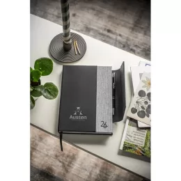 AUSTEN A5. Agenda A5 em PU (58% reciclado) e PET reciclado (100% rPET) 300D