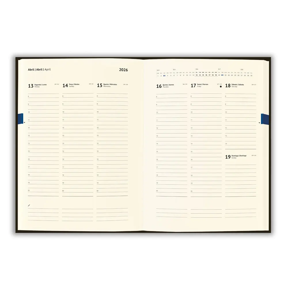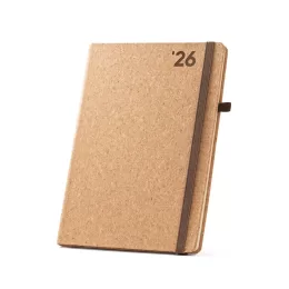 Agenda B5 em cortiça. Agenda com suporte para esferográfica e miolo em cor marfim. Fornecida em bolsa de non-woven. Esferográfica não inclusa. 175 x 245 mm | Bolsa: 220 x 270 mm