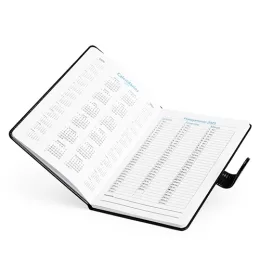 Descrição: Agenda semanal 2025 produzida em couro PU com fecho magnético. Contém folhas para dados pessoais, calendários 2025 à 2027 e planejamento 2025.