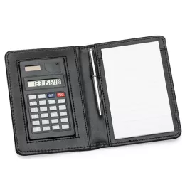 Bloco de Anotações com Calculadora e Caneta 11948 com sua marca. Ideal para registrar ideias, anotações ou compromissos com elegância. Um item essencial para destacar sua marca no ambiente profissional. Clique e valorize sua marca!