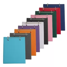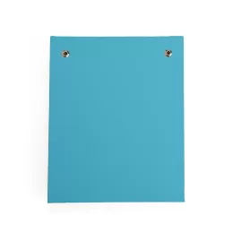 Descrição: Bloco de anotações de mesa com trilho de ferro e capa dura em percalux. Possui aproximadamente 150 folhas brancas sem pauta com área destacável.