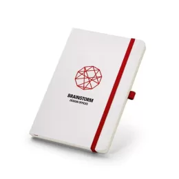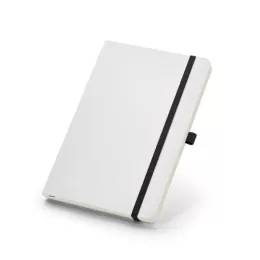 Capa Dura. Com porta esferográfica e 80 folhas não pautadas cor marfim. 137 x 210 mm