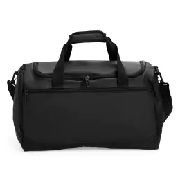 Descrição: Bolsa em filme sintético tipo couro impermeável, com até 30 litros de capacidade após expansão inferior. Possui compartimento interno com bolso menor e outros quatro externos: um com botão magnético, um para calçados, um aberto e outro com zíper e encaixe para malas. Possui um par de alças laterais de mão e uma alça transversal removível.