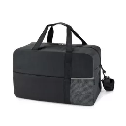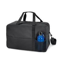Bolsa Esportiva. 600D. Fundo com placa semi-rígida. Bolso frontal com fecho e bolso em tela. Squeeze não incluso. 450 x 280 x 220 mm