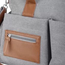 Descrição: Nossa bolsa multifuncional de 17 litros foi pensada para atender diferentes necessidades do dia a dia. Feita em poliéster com tecido resistente à água, ela traz detalhes em couro sintético que dão um toque moderno e sofisticado. Por dentro, é totalmente forrada em nylon e tem um espaço amplo com quatro bolsos, facilitando a organização de tudo o que for necessário. O fechamento principal é por zíper, com um charmoso detalhe em couro sintético. Já na parte externa, são seis bolsos ao todo: um com fechamento em zíper e detalhe em couro sintético, dois nas laterais e outros três com botão de ímã, garantindo praticidade e segurança para pequenos objetos. Para maior conforto, as alças permitem o uso tanto no ombro quanto nas mãos. E para quem precisa de ainda mais versatilidade, a bolsa conta com uma alça extra produzida em poliéster e detalhe em couro sintético ajustável e removível, além de um suporte, perfeito para prender em carrinhos de bebê, supermercado ou onde desejar. Essa bolsa é uma excelente opção de brinde, unindo modernidade e praticidade.