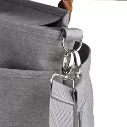 Descrição: Nossa bolsa multifuncional de 8 litros é projetada para se adaptar a diferentes ocasiões. Produzida em poliéster com tecido resistente à água, possui alças em couro sintético que combinam com um design moderno e prático, ideal para guardar diversos itens, como os de bebê, trabalho e afins. A parte interna oferece um espaço amplo e adaptável, com duas divisórias contendo velcro que permitem criar até três compartimentos separados. Além disso, possui um bolso com zíper e três bolsos internos, sendo um deles com elástico para facilitar o acesso. O fechamento da bolsa é feito por um compartimento que protege a parte central. Para torná-la ainda mais funcional, conta com um compartimento térmico integrado, ajudando a manter a bebida na temperatura ideal por mais tempo. Na parte externa, há cinco bolsos adicionais, além de um engate de nylon com fechamento em velcro, perfeito para prender em carrinhos de bebê ou onde desejar. Suas alças podem ser usadas no ombro ou nas mãos. Além disso, conta com uma alça extra ajustável e removível, oferecendo mais versatilidade sempre que necessário. Essa bolsa é uma excelente opção de brinde, unindo modernidade e praticidade.