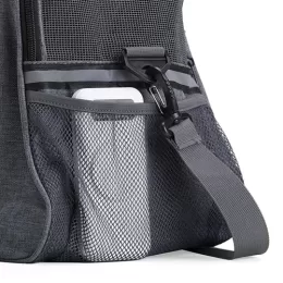 Descrição: Bolsa para transporte de pets, confeccionada em tecido Oxford com bolso lateral. Seu tapete dupla face, com uma camada aveludada, foi projetado para proporcionar o máximo conforto ao pet. Equipada com telas respiráveis em nylon, esta bolsa apresenta uma abertura superior e duas aberturas laterais com faixas refletivas, sendo uma delas com abertura completa, permitindo uma experiência de transporte arejada, com entrada e saída prática para o pet. As alças de mão, estrategicamente equipadas com suporte para junção, garantem conforto durante o transporte manual, enquanto a alça transversal proporciona um transporte ergonômico com distribuição mais eficiente do peso.
