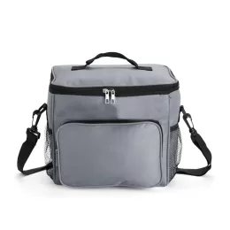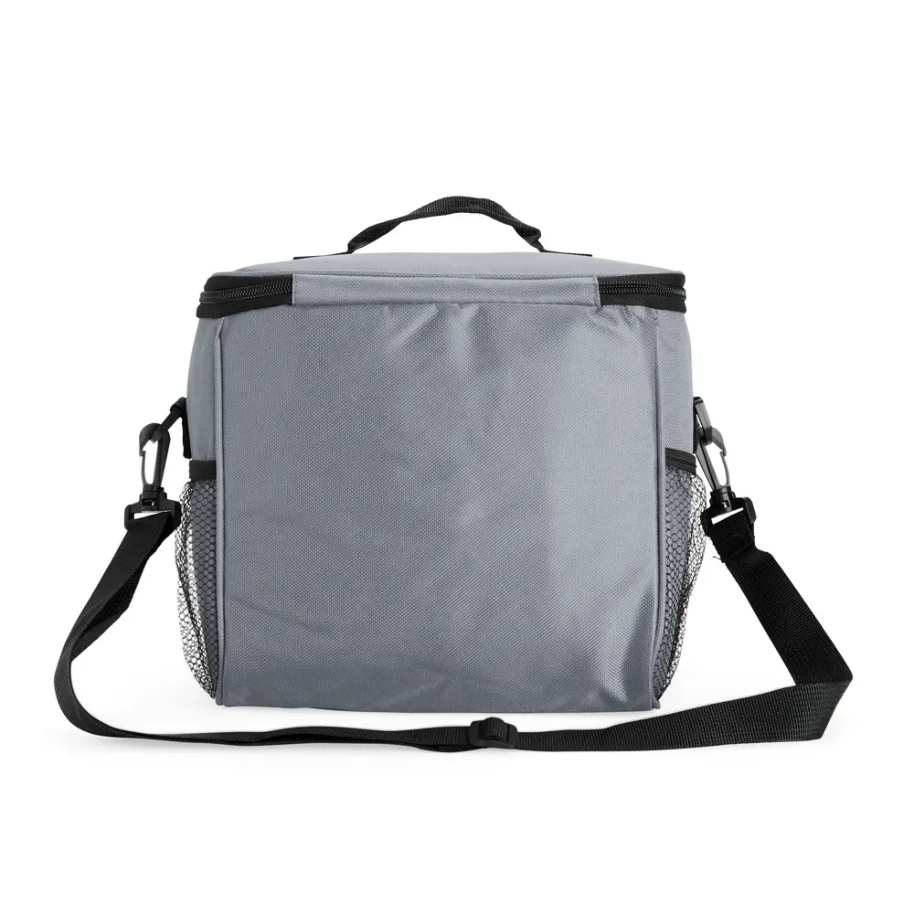 Descrição: Bolsa térmica em Oxford resistente à água e com capacidade de até 11 litros. Seu revestimento interno em alumínio permite a conservação de temperatura de alimentos e bebidas por mais tempo. Possui também um bolso frontal e mais um par de bolsos laterais em tela de nylon, além de uma alça fixa na tampa e outra transversal.