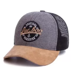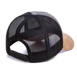 Boné 06 gomos aba curva, confeccionado em malha piquet + tela. Aba em suede, frontal revestida com entretela inteligente, estampa frontal com aplicação de patch fixado com o bordado, ajustador snapback.