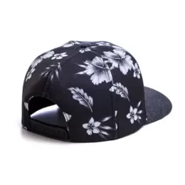 Boné 06 gomos aba reta, confeccionado em sarja 100% poliester sublimada, aba em moletom, frontal revestida com entretela inteligente, estampa frontal com aplicação de patch em couro silkado e fixado com o bordado, ajustador snapback.
