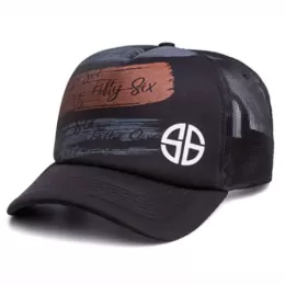 Boné americano, aba curva, confeccionado em helanca + tela. Frontal revestida com espuma, estampa frontal em silk 3d, ajustador snapback.