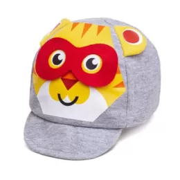 Boné interativo bebe, confeccionado em moletinho mescla, máscara em feltro cortado à laser, estampa frontal em silk, ajustador em elástico.