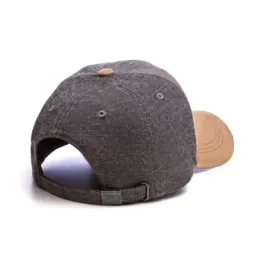 Boné modelo 06 gomos, aba curva, confeccionado em sarja mescla chumbo, aba e botão em camurcinha, frontal revestida com entretela inteligente, estampa em bordado 3d, ajustador em fivela de metal prata velha.