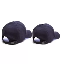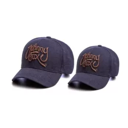 Boné pai e filho, modelo 6 gomos, aba curva, confeccionado em molecoton jeans, frontal revestida com entretela inteligente, estampa em bordado 3d, ajustador em fivela de metal prata velho.