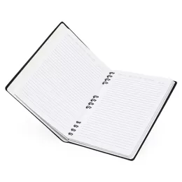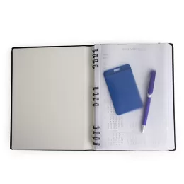 Dê vida às anotações com nossa Caderneta! Com aproximadamente 90 folhas, ela é perfeita para registrar, planejar e criar. De capa dura, feita em couro sintético e com wire-o metálico, nossa caderneta possui espaços dedicados para dados pessoais, calendários de 2025 a 2026 e planejamento, além de áreas para anotar contatos importantes: nome, e-mail e telefone. O marcador de página facilita a localização das anotações, enquanto o fechamento com elástico garante que tudo fique seguro.