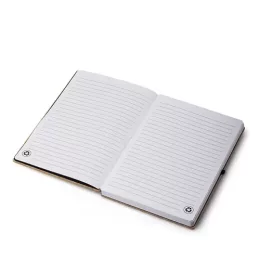 Descrição: Caderneta ecológica capa dura em bambu. Possui aproximadamente 96 folhas pautadas, elástico para lacre, suporte para caneta e marcador de página em cetim.