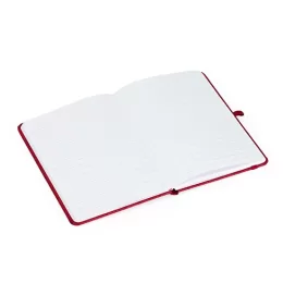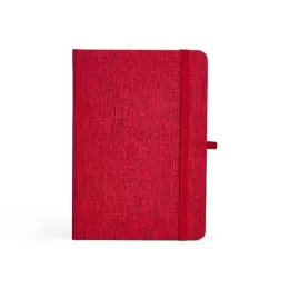 Descrição: Caderneta feita de linho com porta caneta elástico, marcador de página em cetim e fita elástica para fechar. Contém aproximadamente 80 folhas brancas pautadas.