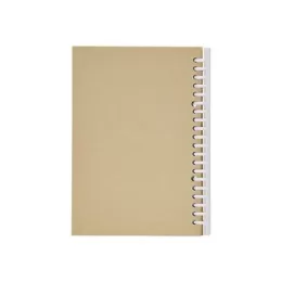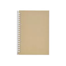Descrição: Caderno A5 com capa dura em kraft e espiral removível, contém aproximadamente 87 folhas marfim com pauta.