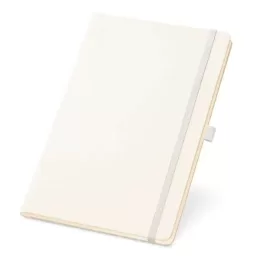 Caderno Capa Dura. Com porta esferográfica, bolso interior e 80 folhas pautadas cor marfim. 137 x 210 mm