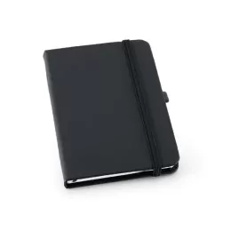 Caderno Capa Dura Couro Sintético. Com porta esferográfica e 80 folhas pautadas. 90 x 140 mm