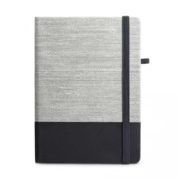 Caderno capa dura. Palha e algodão canvas. 96 folhas pautadas. Suporte para esferográfica. Esferográfica não inclusa. 150 x 210 mm