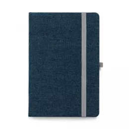 Caderno capa dura. Jeans. 96 folhas pautadas. Bolso interior. Suporte para esferográfica. Esferográfica não inclusa. 140 x 210 mm
