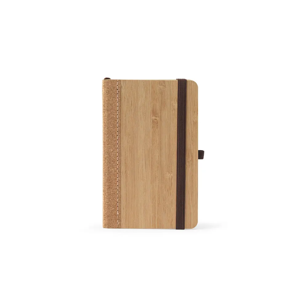 Caderno de bolso de capa dura em folha de bambu e cortiça com 160 páginas pautadas