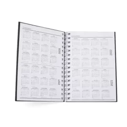 Possui aproximadamente 96 folhas brancas pautadas e páginas para: dados pessoais, calendário de 2020 à 2023 e planejamento.