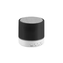 Caixa de som com microfone. ABS. Acabamento em borracha. Com transmissão por bluetooth e leitor de cartões TF. Com 3W/4Ω. Autonomia até 2 h. Função para atender chamadas, controle de volume e conexão à playlist do dispositivo móvel. Incluso cabo USB/micro USB para carregar. ø59 x 55 mm