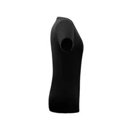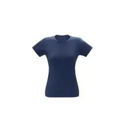 Camiseta feminina de corte cinturado em malha 100% algodão (170 g/m2) com fio 30/1 penteado. Com gola em ribana 1×1 com fita de reforço e com costura dupla nas mangas, barra de fundo e laterais. Tamanhos: P, M, G, GG