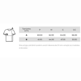 | Tamanho | P, M, G, GG |