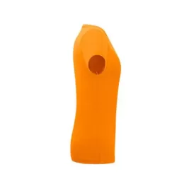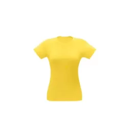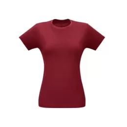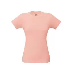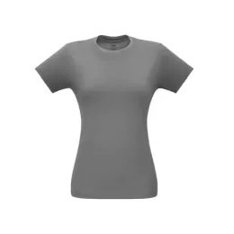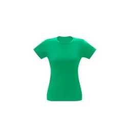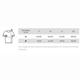 Camiseta feminina de corte cinturado em malha 100% algodão (165 g/m2) com fio 30/1 misto. Com gola em ribana 1×1 com fita de reforço e com costura dupla nas mangas, barra de fundo e laterais. Tamanhos: P, M, G, GG