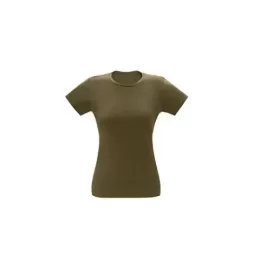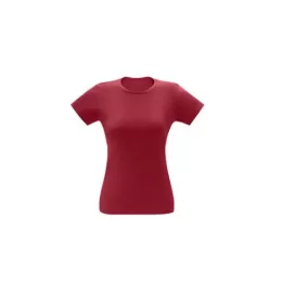 Camiseta feminina de corte cinturado em malha 100% polyester fiado (135 g/m2) com fio 30/1 polyester. Com gola em ribana 1×1 com fita de reforço e com costura dupla nas mangas, barra de fundo e laterais. Tamanhos: P, M, G, GG