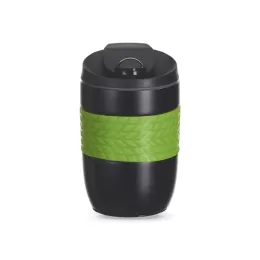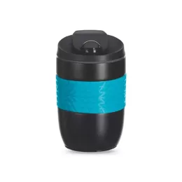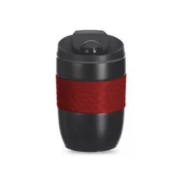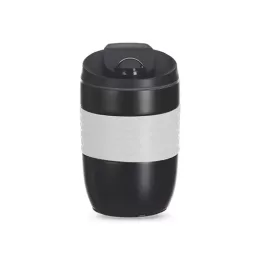 Caneca antiqueda em aço inox parede dupla, conserva temperatura, pegador em silicone e bico com tampa. Capacidade 260ml.