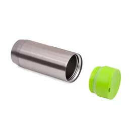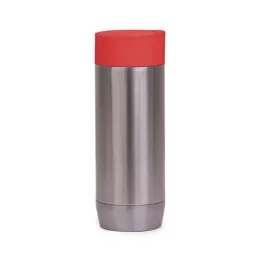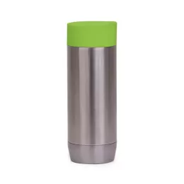 Caneca em aço inox parede dupla, conserva temperatura e tampa com vedação. Capacidade 450ml.