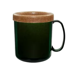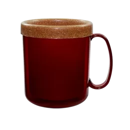 Caneca plástica injetada, atóxica, formada com corpo cristal colorido e refil feito com 50% de fibra natural de madeira com 3 cores especiais que utilizam pigmentos orgânicos na fabricação. Dupla parede que conserva a temperatura e tem capacidade para 300 ml.
