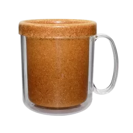 Capacidade para 300 ml. Caneca plástica, atóxica, composta por duas partes, um corpo cristal transparente em Plástico Premium (PS Cristal) e um refil feito com 50% de Fibra Natural de Coco ou Madeira e 50% em Plástico Premium (PP) atóxico. Dupla parede que conserva por mais tempo a temperatura.