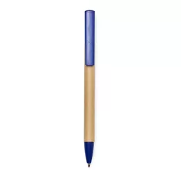 Descrição: Caneta de papelão com suporte para celular, carga esferográfica azul 0,8 mm e acionamento por clique.