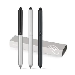 Caneta em Alumínio com Mecanismo Twist. Ponteira touch em silicone. Corpo laqueado com acabamento matt/brilhante. Recarga em metal “tipo-Cross”.