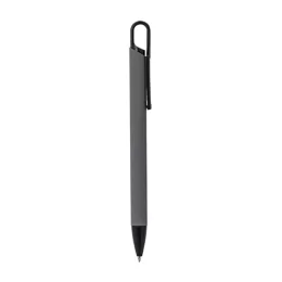 Descrição: Caneta metálica com acabamento similar à borracha, carga esferográfica azul 1.0mm e acionamento por clique.