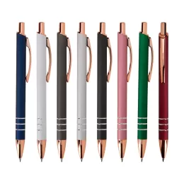 Descrição: Caneta metálica com acionamento por clique e carga esferográfica azul de 1.0mm, uma combinação que oferece pegada leve para uma escrita mais precisa.