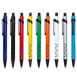 Descrição: Caneta metal colorida com detalhes preto fosco. Clip metálico, parte inferior com detalhes preto emborrachado. Aciona por clique. OBS.: PEDIDO APENAS MÚLTIPLO DE 50 PEÇAS!