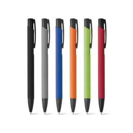 Esferográfica. Alumínio. Acabamento emborrachado. 1,5km de escrita. ø10 x 137 mm