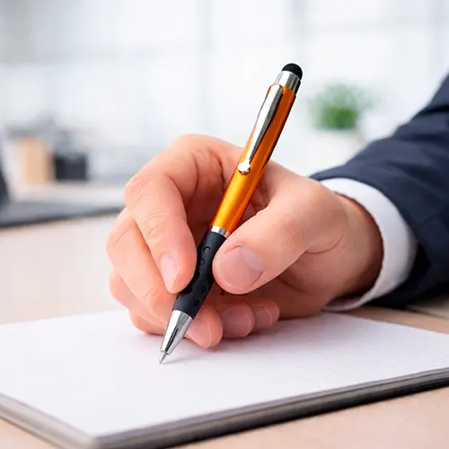 Caneta Plástica com Suporte para Celular 12412 com sua marca. Ideal para registrar ideias, anotações ou compromissos com elegância. Um item essencial para destacar sua marca no ambiente profissional. Clique e valorize sua marca!