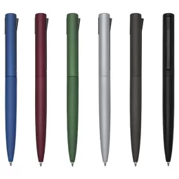Descrição: Caneta semimetal inteira colorida com pintura fosca. Clip preto plástico, para acioná-lo basta pressionar sua parte inferior e para voltar ao normal pressionar sua parte superior. OBS.: PEDIDO APENAS MÚLTIPLO DE 50 PEÇAS!