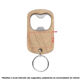 Descrição: Chaveiro abridor de garrafas em madeira.