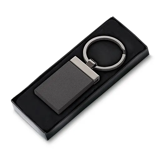 Chaveiro produzido em liga de zinco, ferro e alumínio.