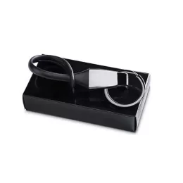 Chaveiro de Metal Fumê com Alça Emborrachada com Mosquetão na Argola. Caixa com Berço Aveludado