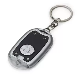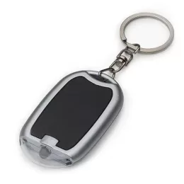 Chaveiro lanterna plástico, parte central colorida lisa e verso com botão para acionar lanterna. Possui as laterais em prata e lanterna com proteção acrílica, acompanha 3 baterias(duas LR1130 e uma CNB G10).