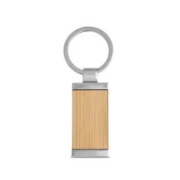 Chaveiro retangular em bambu com revestimento em metal. Fornecido com bolsa em cartão kraft. 22 x 47 x 5 mm